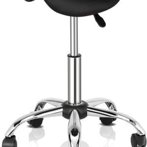 Σκαμπό σέλας κυλιόμενη καρέκλα υδραυλική περιστρεφόμενη ρυθμιζόμενη ύψος, εργονομικό σκαμπό με ρόδες για Beauty Spa Salon Lash Tech Esthetician Tattoo Artist Kitchen Shop Μαύρο