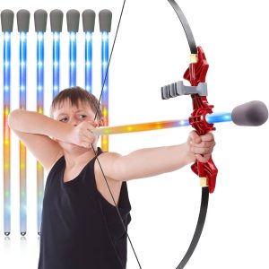 Σετ τοξοβολίας Fiberglass Bow & Arrow με φώτα φλας LED, 8 βέλη, τόξο και βέλος για παιδιά 8-12 διασκεδαστικά παιχνίδια για αγόρια κορίτσια Παιδικά βαλλίστρα εσωτερικών και εξωτερικών τόξων Παιχνίδια για βολές πάνω από 100 πόδια
