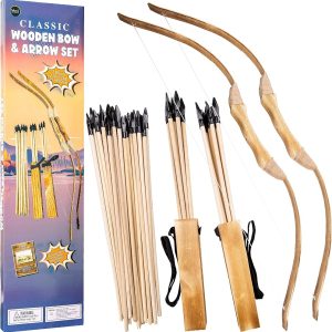 Κλασικό ξύλινο σετ τοξοβολίας με τόξο και βέλη για εξωτερικούς χώρους Παιχνίδια και δώρα για παιδιά αγόρια και κορίτσια – 2 τόξα, 2 φαρέτρα και 20 βέλη