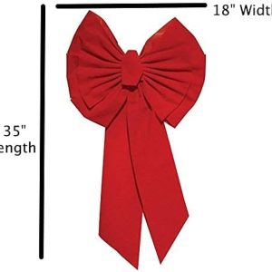 Κόκκινο Χριστουγεννιάτικο Φιόγκο Extra Large 35” επί 18” – 11 Looped Αδιάβροχο Βελούδινο Μεγάλο Εξωτερικό Φιόγκο – Φιόγκος για αυτοκίνητο, Πόρτα, Σπίτι – Jumbo Κόκκινο Φιόγκο με Εξάρτημα για κρέμασμα (3)