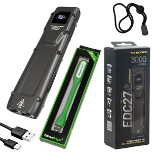 EDC27 3000 Lumen Flat EDC φακός, επαναφορτιζόμενο USB-C υψηλής απόδοσης Λεπτό συμπαγές φως τσέπης με ψηφιακή οθόνη και θήκη LumenTac