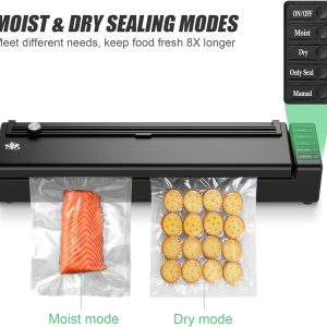 Μηχάνημα στεγανοποίησης κενού, Ασύρματο επαναφορτιζόμενο στεγανωτικό σκούπας για αποθήκευση ξηρών/υγρών τροφών και Sous Vide, με εξωτερική ηλεκτρική σκούπα και 1 σωλήνα αναρρόφησης, σφραγιστικό κενού με κόφτη σακουλών και 10 σακούλες στεγανοποίησης κενού