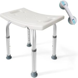 Σκαμπό ντους 350 λίβρες Καρέκλα καθίσματος μπάνιου, Πάγκος μπάνιου με ρυθμιζόμενο ύψος χωρίς εργαλεία συναρμολόγησης με κάθισμα με επένδυση για ηλικιωμένους, ηλικιωμένους, άτομα με ειδικές ανάγκες, άτομα με ειδικές ανάγκες (Κατάλληλο για FSA ή HSA)