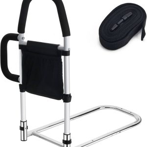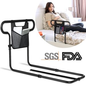 Κάγκελα κρεβατιού για ηλικιωμένους ενήλικες – Βοηθητική ράγα κρεβατιού με διπλές λαβές λαβής για εύκολη είσοδο και έξοδο από το κρεβάτι, Κάγκελα κρεβατιού με τσέπη αποθήκευσης, ταιριάζει με King, Queen, Full, Twin – 300lbs