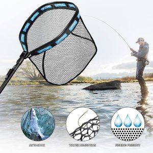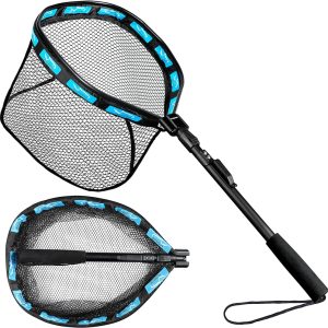 Πλωτό δίχτυ ψαρέματος, δίχτυ ψαρέματος επικαλυμμένο με καουτσούκ για εύκολη σύλληψη και απελευθέρωση, δίχτυα ψαρέματος γλυκού νερού για μπάσο, πέστροφα, Walleye, καγιάκ, πτυσσόμενο δίχτυ προσγείωσης για εύκολη μεταφορά και αποθήκευση