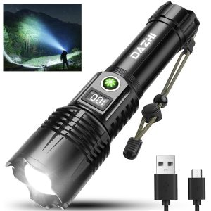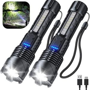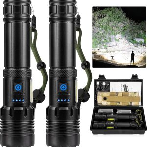 Φακός High Lumens Rechargeable 2 Pack, 250000 Lumen Super Bright Led φακοί με 7 λειτουργίες φωτός, IPX6 αδιάβροχο, με δυνατότητα ζουμ, ισχυρό φορητό φως φλας για καταστάσεις έκτακτης ανάγκης
