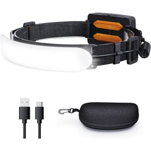 Επαναφορτιζόμενος προβολέας, 7500 mAh 1500 Lumen Super Bright ευρείας δέσμης λυχνίας Led, Φωτισμός σκληρού καπέλου, ζώνη προβολέων για το κεφάλι, κεφαλόδεσμος φακών USB-C, προβολείς strip COB για ενήλικες Πεζοπορία σε κάμπινγκ