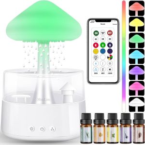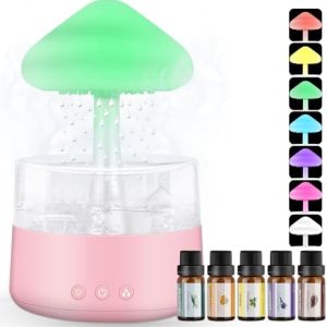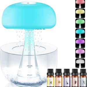 Υγραντήρας Rain Cloud Σταγόνα νερού με 5 αιθέρια έλαια, Cloud Diffuser με 7 νυχτερινά φώτα που αλλάζουν χρώματα, Υγραντήρας μανιταριών Επιτραπέζιος υγραντήρας κομοδίνου Ήχος σταγόνας νερού, ξύλο