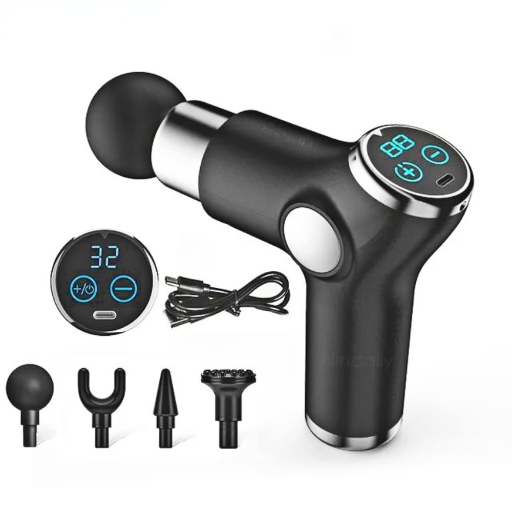 Πιστόλι μασάζ, πιστόλι μασάζ κρουστών με 30 επίπεδα ταχύτητας & 9 κεφαλές μασάζ, φορητό ηλεκτρικό μασάζ μυών για κάθε ανακούφιση από τον πόνο, δώρα για οικογένειες και φίλους (Γκρι)