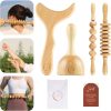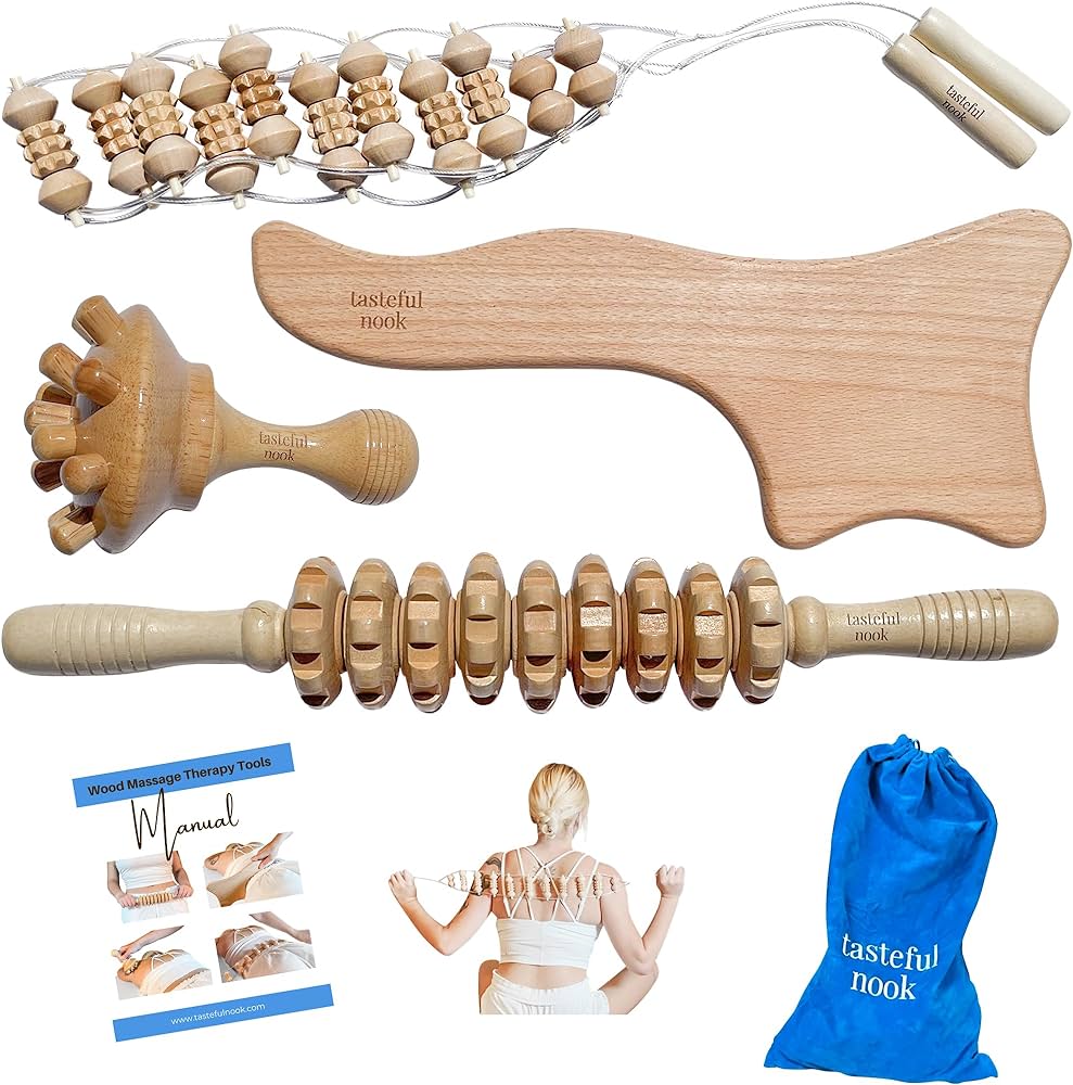 Wood Therapy Massage Tools Kit (Set of 4) – Wood Sculpting Tools for Body – Wood Roller for Cellulite – Professional Massage Kit for Massage Therapy w/ Gift Bag – Lymphatic Massage Kit